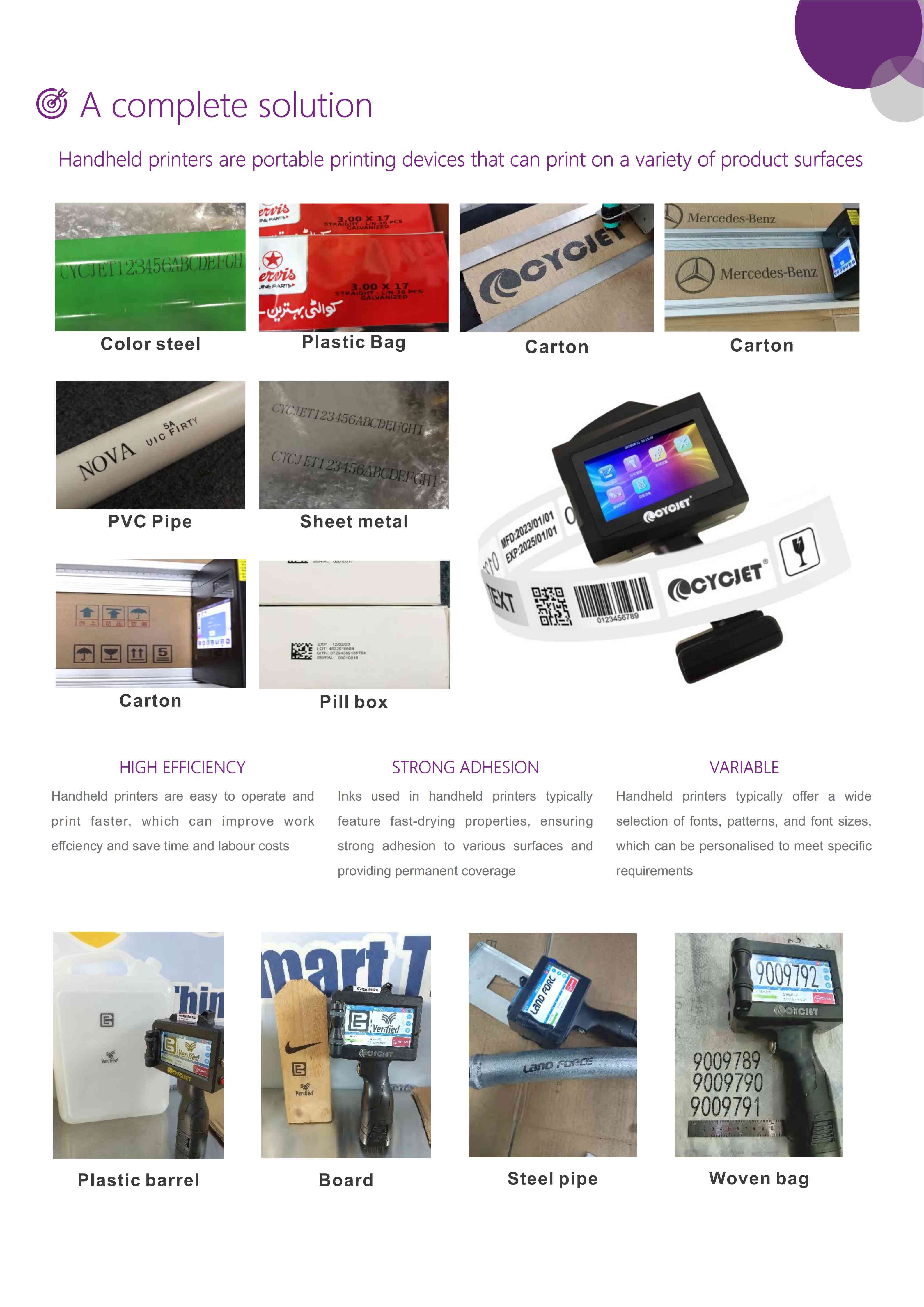 Handheld inkjet printer for bags