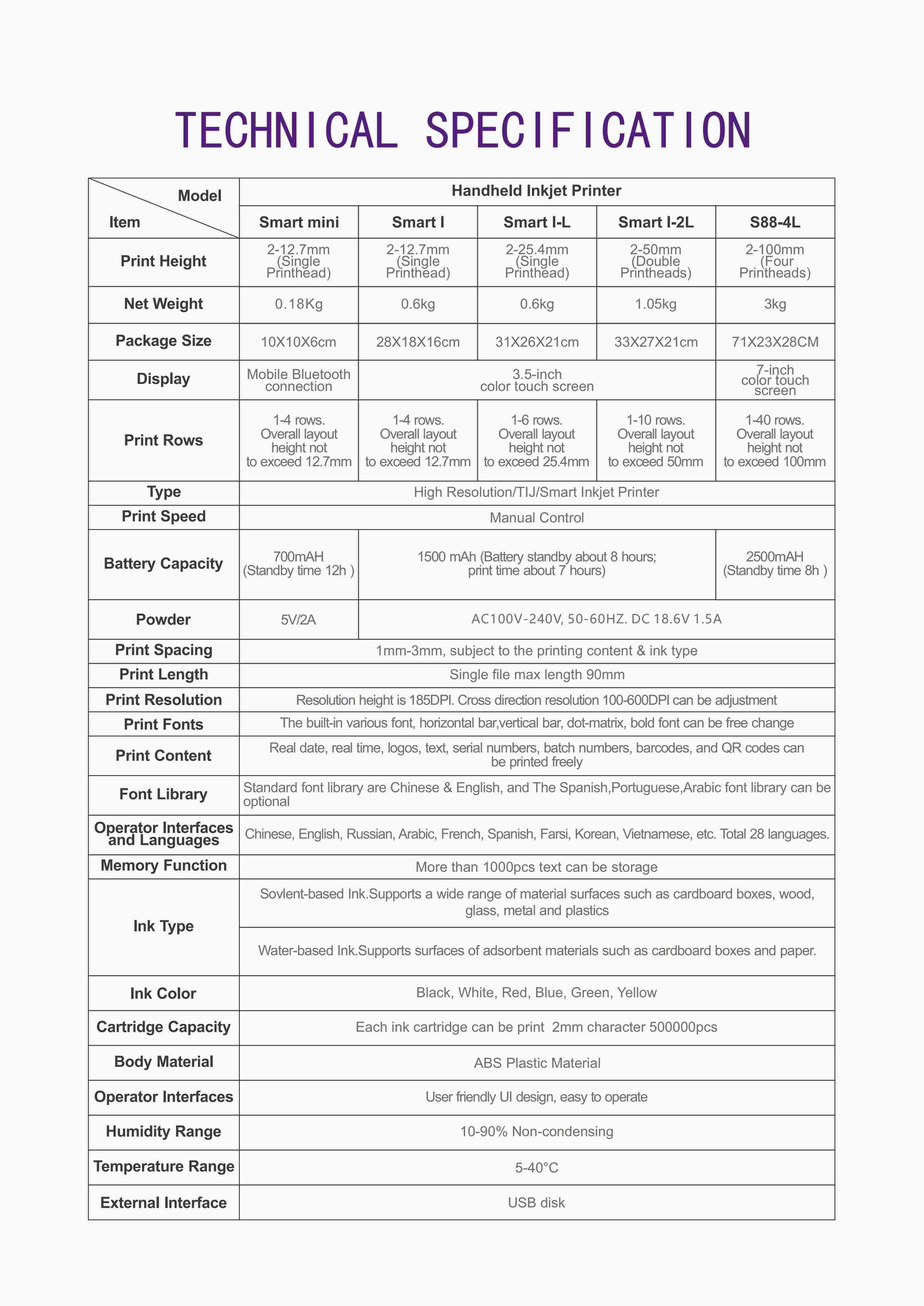 Featuring a single printhead, this device achieves a maximum print height of 25.4 mm and supports resolutions up to 600 DPI. It is capable of printing text, batch numbers, production and expiration dates, as well as graphics such as logos, QR codes, and barcodes.