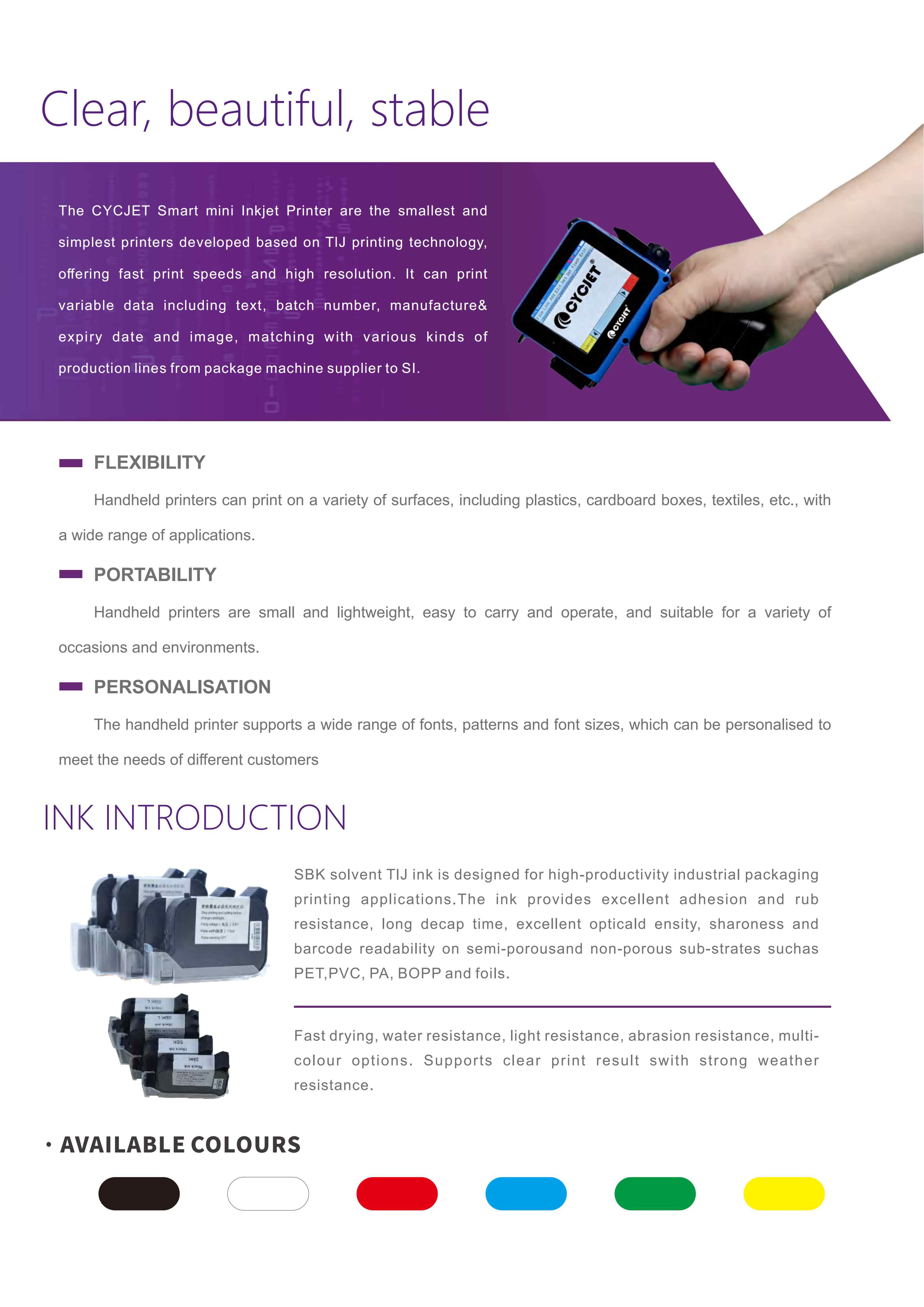 The CYCJET Smart Mini Printer is a compact, drop-on-demand inkjet system built for dynamic production settings. Lightweight and agile, it delivers clear, reliable batch coding on various packaging surfaces—anytime, anywhere.